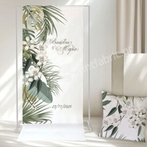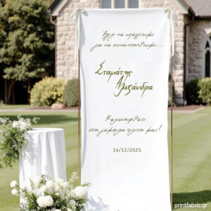 Υφασμάτινη Αφίσα Backdrop σε οποιαδήποτε διάσταση και σχήμα. Τετράγωνη, μακρόστενη, κάθετη, στρογγυλή, ψηφιακά εκτυπωμένο το θέμα του γάμου, της βάπτισης-Party και οποιοδήποτε event. Προσωποποιημένη με ονόματα, ημερομηνία, . . .